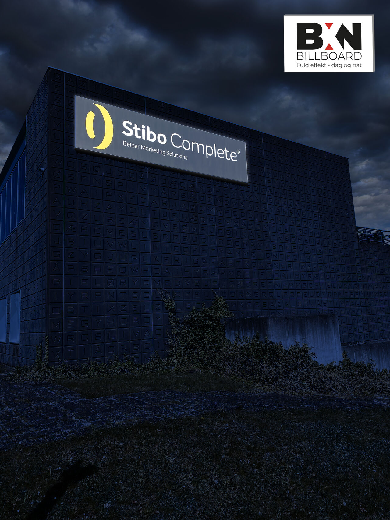 Da Stibo Complete overtog Aller Tryk i Taastrup skulle der selvfølgelig synlighed på facaden og her valgte Ricki Nielsen hele 2 stk. af vores BXNbillboard løsning med bannerfront i 6,0 x 1,5 meter.