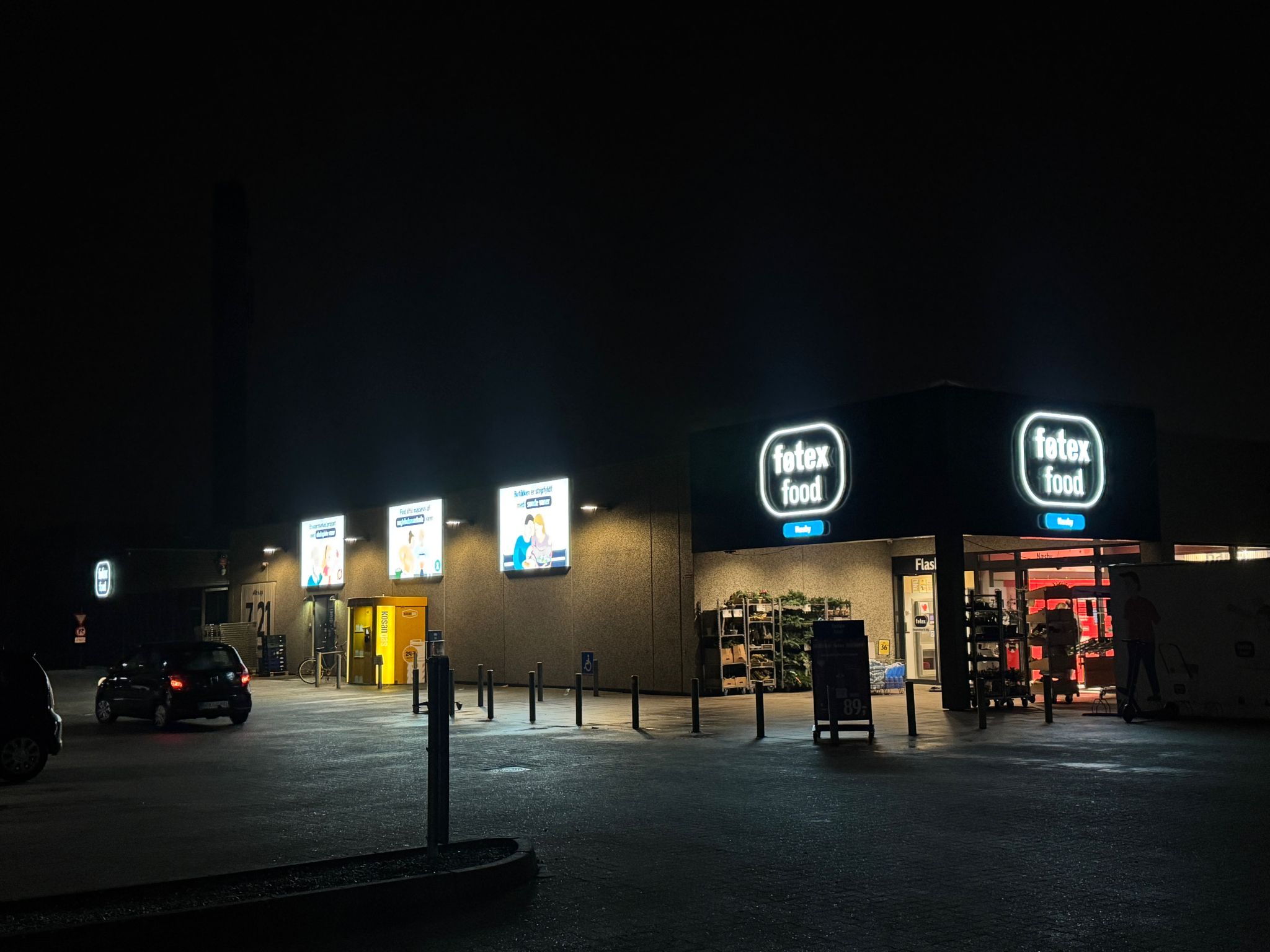 En løsning der løfter hele kunderejsen allerede ude på parkeringspladsen og giver butikken et markant og moderne udtryk i aftentimerne.