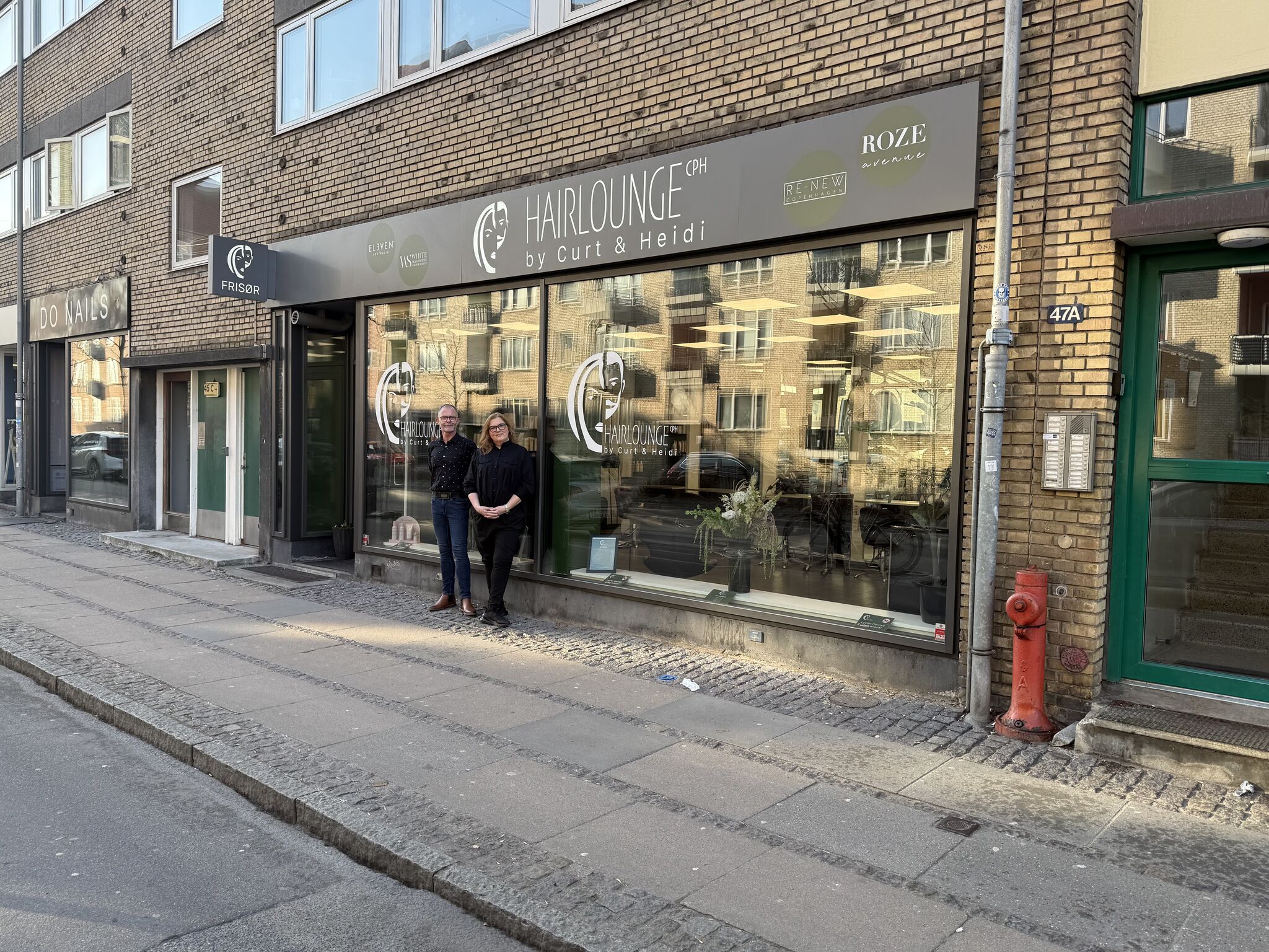 Nyt facade skilt og udhængsskilt, dansk produceret og monteret af bendixen til Hairlounge by Heidi & Curt i samarbejde med White Avenue Group A/S & Martin Staghøj.